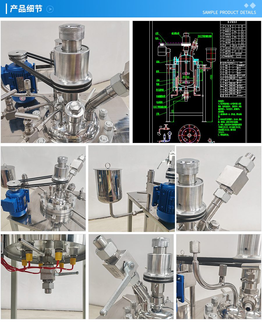 其他附件 如果用户在釜盖、釜体开口、内部结构、压力高低、搅拌桨叶、及增加其他辅助装置(如冷凝回流装置、冷凝器、恒压加料罐、接收装置)等有特殊要求,可完全按用户的要求加工制造