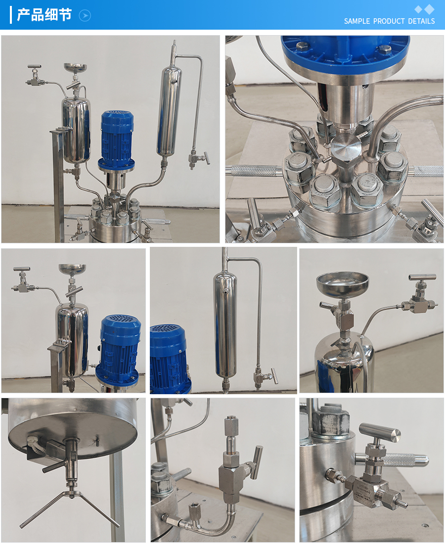 其他附件 如果用户在釜盖、釜体开口、内部结构、压力高低、搅拌桨叶、及增加其他辅助装置(如冷凝回流装置、冷凝器、恒压加料罐、接收装置)等有特殊要求,可完全按用户的要求加工制造