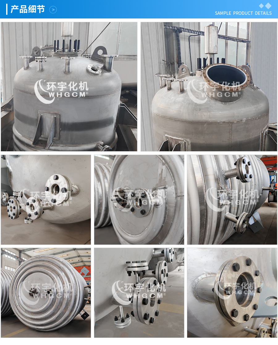 主要材料 釜体材料主要采用不锈钢与碳钢复合材质 S30408(304)+Q345R、S31603(316L) +Q345R、S32168(321)+Q345R, 也可是纯不锈钢材质,并可根据不同介质要求制作钛材、镍材、锆材、哈氏合金、蒙耐尔合金等复合材质反应釜,也可根据客户要求主要材料喷涂四氟PTFE/PPL。