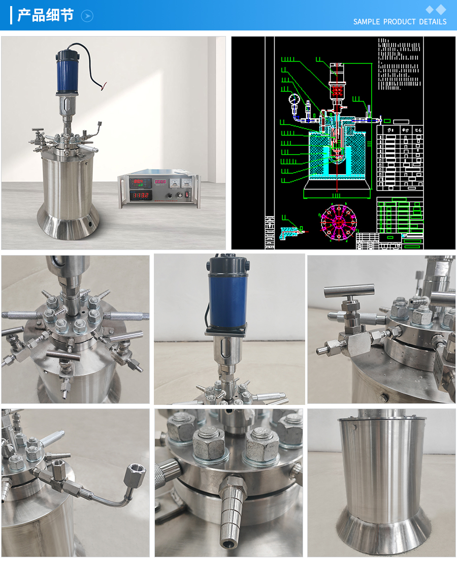 其他附件 如果用户在釜盖、釜体开口、内部结构、压力高低、搅拌桨叶、及增加其他辅助装置(如冷凝回流装置、冷凝器、恒压加料罐、接收装置)等有特殊要求,可完全按用户的要求加工制造